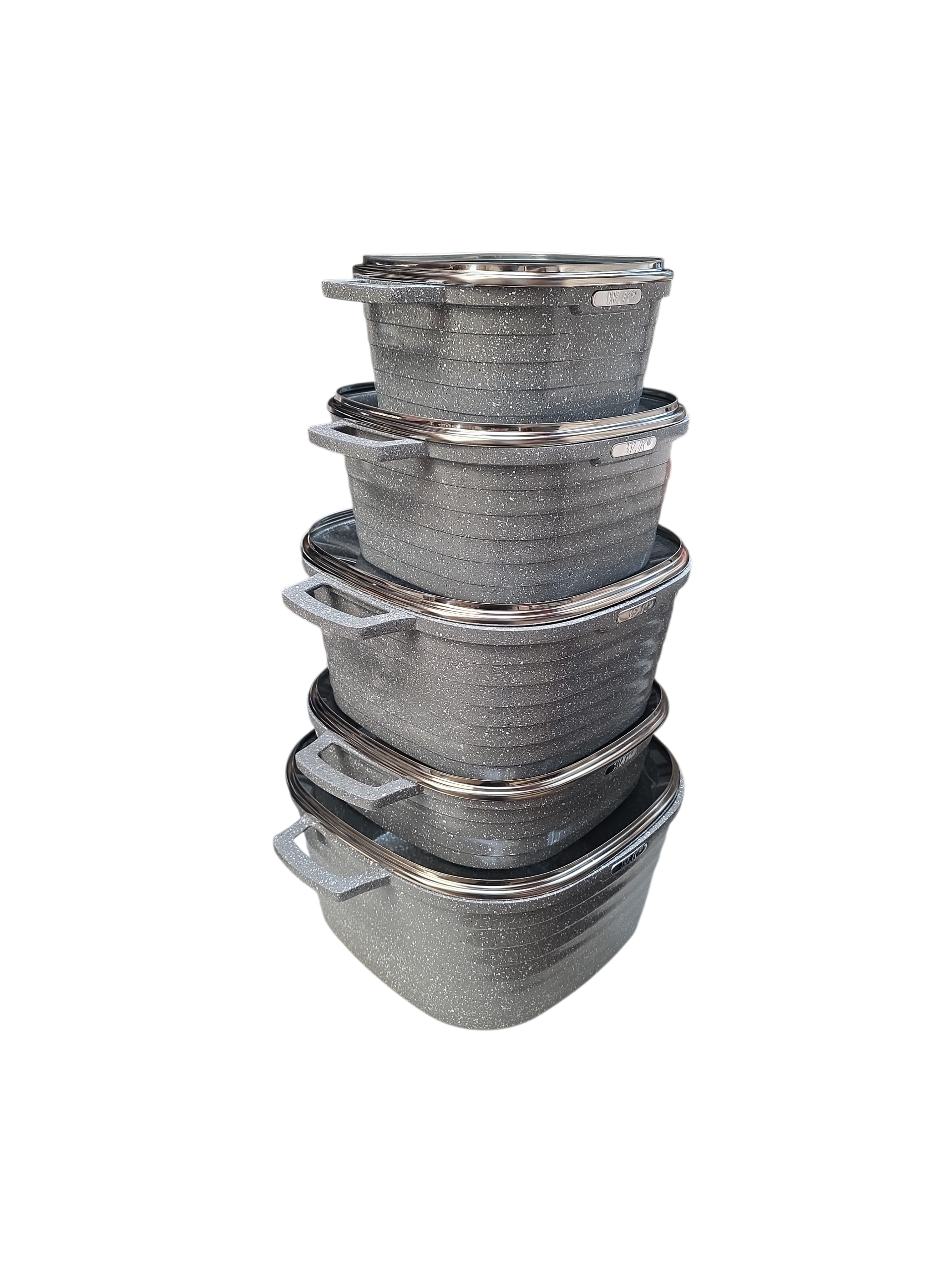 W.K 10 Piece Granite Non Stick Coated Die Casting Aluminum Cookware SET - Silver Grey